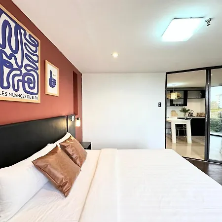 Das Apartment Artsy Central Loft 1Br, 24-7Concierge, Balcony verfügt über einen Balkon und Annehmlichkeiten wie eine Klimaanlage. Diese Unterkünfte bietet 1 Badezimmer.